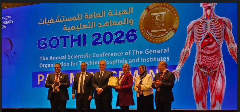 تم تكريم الدكتورة/ هبه على الدش مسؤول الصيدلة الاكلينيكية بالمستشفى ضمن الصيادلة المتميزين على مستوى الهيئة خلال فاعليات المؤتمر العلمى السنوى للهيئه العامة للمستشفيات والمعاهد التعليمية ٢٠٢٦.