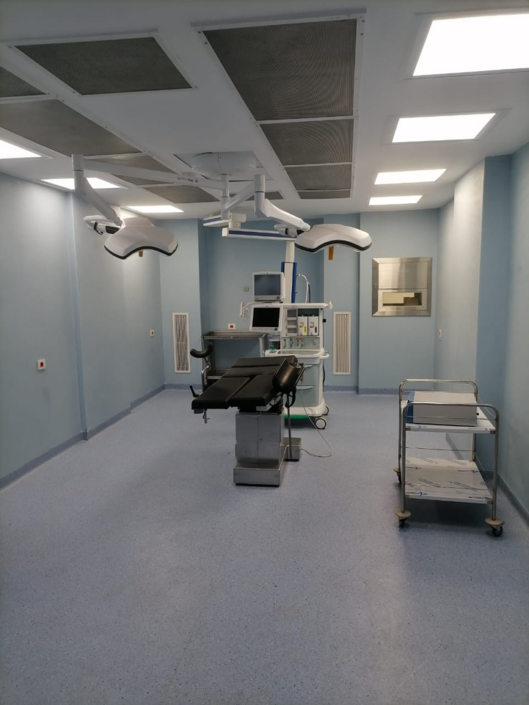 - جهاز تفتيت عدسة العين وجراحة الجسم الزجاجي الأمامي وغيرها من الأجهزة الطبية الحديثة في أقسام العنايات المركزة والعمليات الجراحية بالإضافة إلى أنه تم تجهيز عدد(8 ) غرف من غرف الإجراءات التداخلية في صورة كبسولات جراحية وفقاً لأحدث النظم المستخدمة و معايير مكافحة العدوى وذلك لإستخدامها في الجراحات التخصصية مثل جراحات القلب المفتوح ، المخ والأعصاب ، العمود الفقري و العيون .